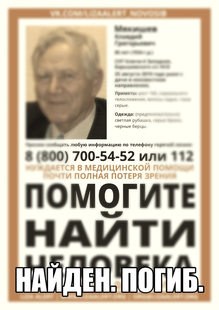 Клавдий Григорьевич погиб, – сообщили в поисковом отряде «Лиза Алерт». – Выражаем наши соболезнования родным и близким. Спасибо всем, кто ездил на поиск, помогал в сети и делал репосты.