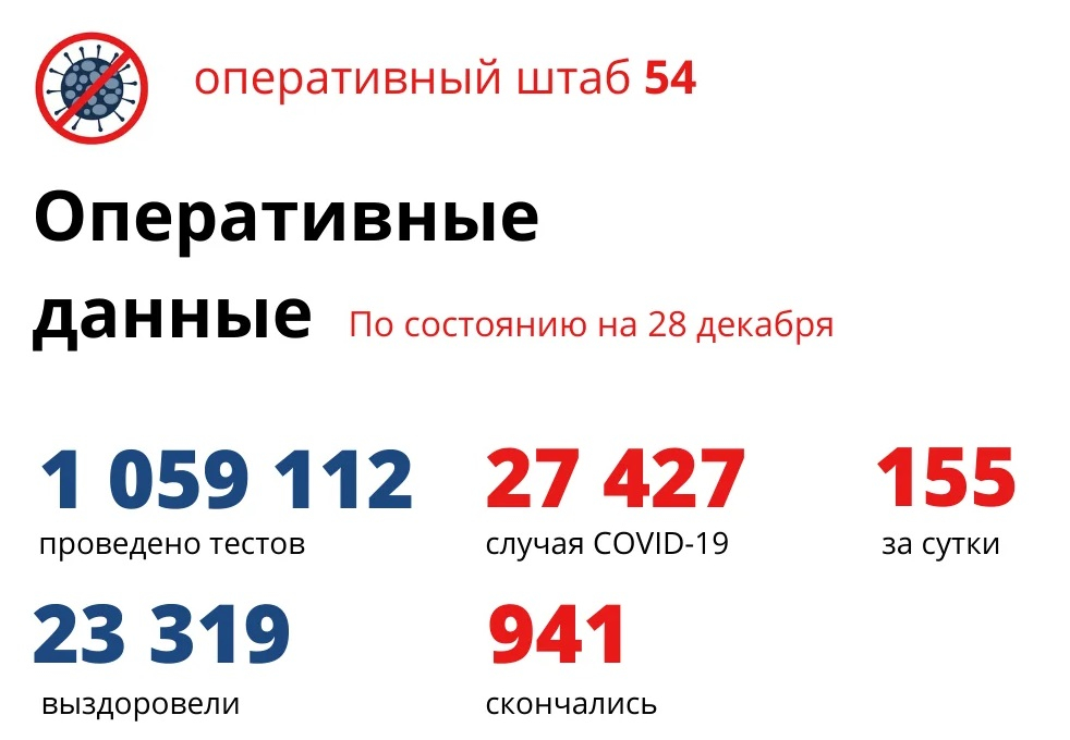 За прошедшие 24 часа выявили 155 заболевших новосибирцев, вылечились 95 жителей региона. Данные на 28 декабря не сильно отличаются от тех, о которых оперштаб сообщал вчера. Умерших тоже было 8 человек.