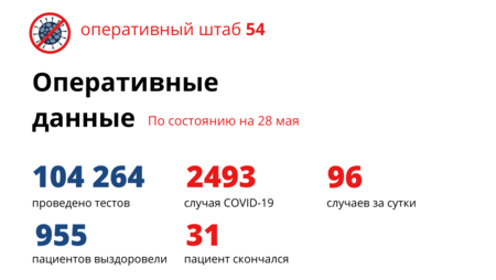 Всего в Новосибирской области лабораторно COVID-19 подтвержден у 2493 человек, в том числе у 153 детей. 955 человек выздоровели, 31 пациент скончался.