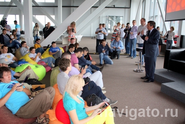 Торжественное открытие мероприятия состоялось вчера, 10 июля. Участников НеФорума впечатлила площадка, на которой они оказались – 13-й этаж одной из двух наклонных башен Академпарка – Центра информационных технологий, построенного специально для резидентов Технопарка, работающих в области IT. Специально для того чтобы поприветствовать блогеров, в Академпарк приехал мэр города Владимир Городецкий.