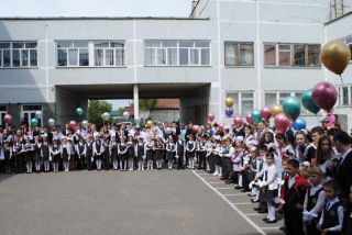 Мэр приехал в наш район, уже побывав в двух городских школах. Все образовательные учреждения очень разные, по-разному проходят и линейки в них. В школе №112, к примеру, выпускников приветствовали в актовом зале. А в 165-й по традиции педагоги, ученики и гости собрались в школьном дворе.