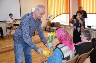 От имени директора управляющей компании Ольги Каримовой активистов поздравили начальник отдела ЖКХ Олег Залибивский и специалист по работе с населением Юрий Ткаченко. Они вручили мужчинам наборы из кофе и шоколада, а женщинам – букеты тюльпанов и конфеты. Особенно тепло Юрий Иванович поздравил ветерана Александру Николаевну Смирнову: ей за 90, но она по-прежнему в строю! Подарки получили и ребята из «Россыпи».