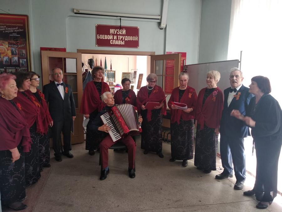 Душевный подарок к Дню Победы подготовил музыкальный коллектив из Академгородка. В Ресурсном центре общественных объединений Советского района (ул. Новоморская, 12) ветеранский ансамбль «Славяне» под руководством Валентины Максимовны Цымбал выступил с праздничной программой.