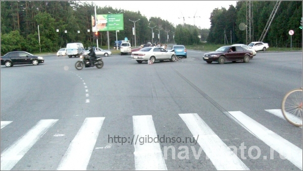 30 июня в восемь вечера водитель-женщина, 1971 г.р., следовала на автомобиле Тойота Королла по Бердскому шоссе и на пересечении с пр. Строителей совершила столкновение с Тойотой Чайзер под управлением водителя, 1963 г.р., после чего Тойота Чайзер врезалась в Форд Фокус под управлением женщины, 1980 г.р. Пострадала водитель автомобиля Тойота-Королла (ушиб позвоночника) и пассажирка, женщина 1952 года рождения (ушиб грудной клетки).