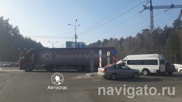 Фура "зацепила" маршрутку на перекрестке Бердского шоссе и пр. Строителей
