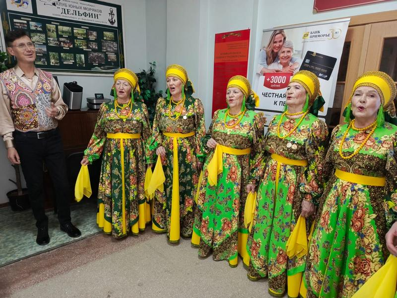 Весело и задорно старшее поколение порадовал ансамбль «Завалинка» (художественный руководитель Николай Игнатович, ДК «Приморский»). Самодеятельные артисты исполнили русские народные песни. Особенным подарком для женщин стал романс «Ах ты, душечка» в исполнении Петра Суховеркова.