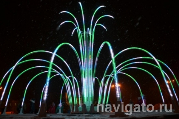 Фонтан Желаний в парке Бердска заработал 22 декабря. Струи воды имитируют светодиоды, включать фонтан обещают ежедневно в темное время суток.