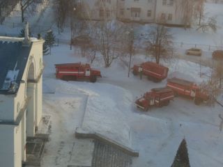 Около ДК «Приморский» утром 2 февраля жители ОбьГЭС увидели несколько пожарных машин и сотрудников МЧС.