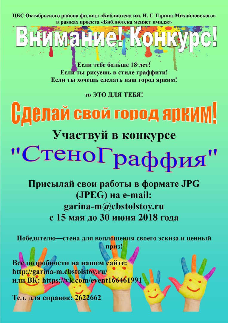 Библиотека имени Н.Г. Гарина-Михайловского рассчитывает привлечь молодежь к участию в художественном оформлении большой серой стены здания, а также помочь формированию активной жизненной позиции у молодых граждан и пропаганды позитивных примеров использования граффити.