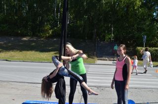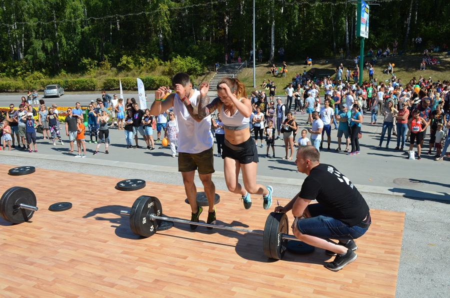 С 10 часов утра на площадке перед Домом культуры «Академия» уже многолюдно: совсем маленькие жители Советского района активно изучают детские батуты, ребята чуть старше и взрослые с радостью занимаются на тренажерах под присмотром опытных тренеров из трех фитнес-клубов Академгородка.