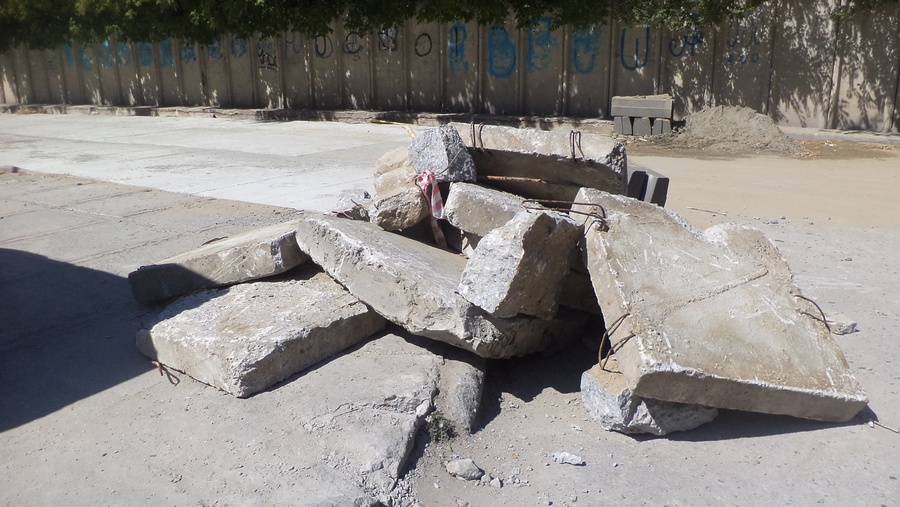 По словам прораба, новый бетонный камень появится только там, где он пришёл в полную негодность или там, где его вообще никогда не было. Сколько всего людей трудится на объекте, руководитель не знал. На вопрос о том, где же рабочие, неуверенно произносил: «Возможно, обедают...»