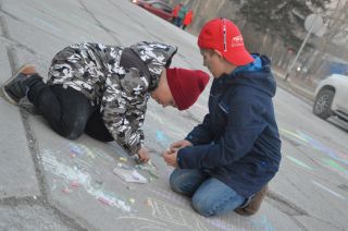 Детвора и подростки фантазировали на тему «Я в космосе»: на уличной площадке рисовали мелом на асфальте.