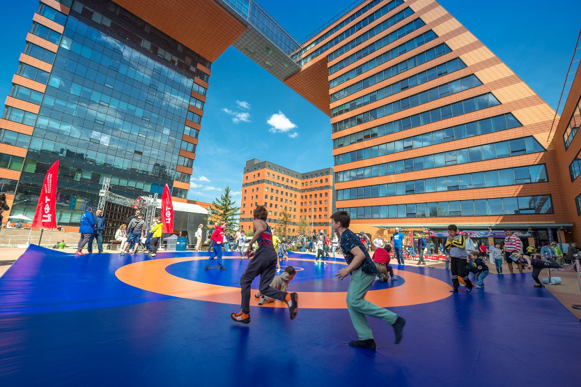 В финальный день фестиваля площадь между башнями Академпарка превратилась в масштабный научно-образовательный центр. Здесь все желающие могли научиться управлять роботами, создать мобильное приложение, с помощью очков виртуальной реальности открыть новые миры, поучаствовать в квизе, поставить научный опыт и задать любой вопрос ученым новосибирских институтов.
