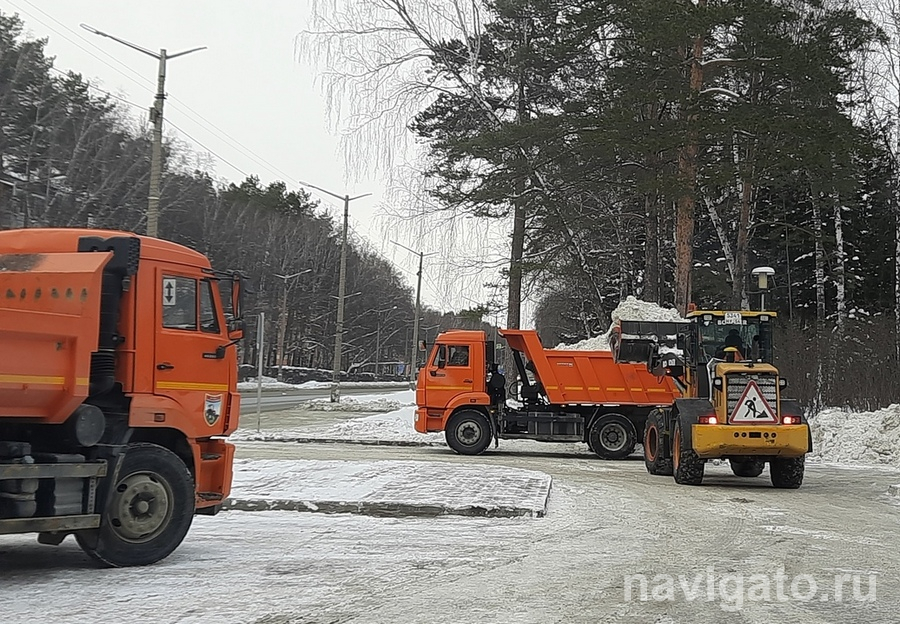 В ночь на понедельник, 21 декабря, массово будут убирать снег на проспекте Строителей и улице Софийской, а днём – на проспекте Академика Коптюга и улице Барьерной.