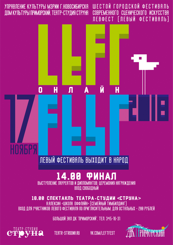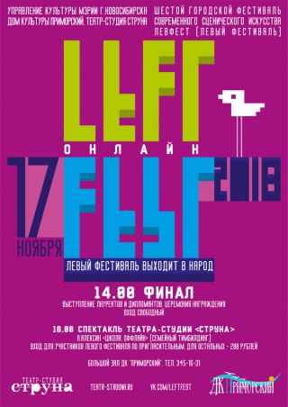 Шестой городской фестиваль современного сценического искусства LeftFest (Левый фестиваль) вышел на финишную прямую! Отборочный этап завершился, финалисты определены.