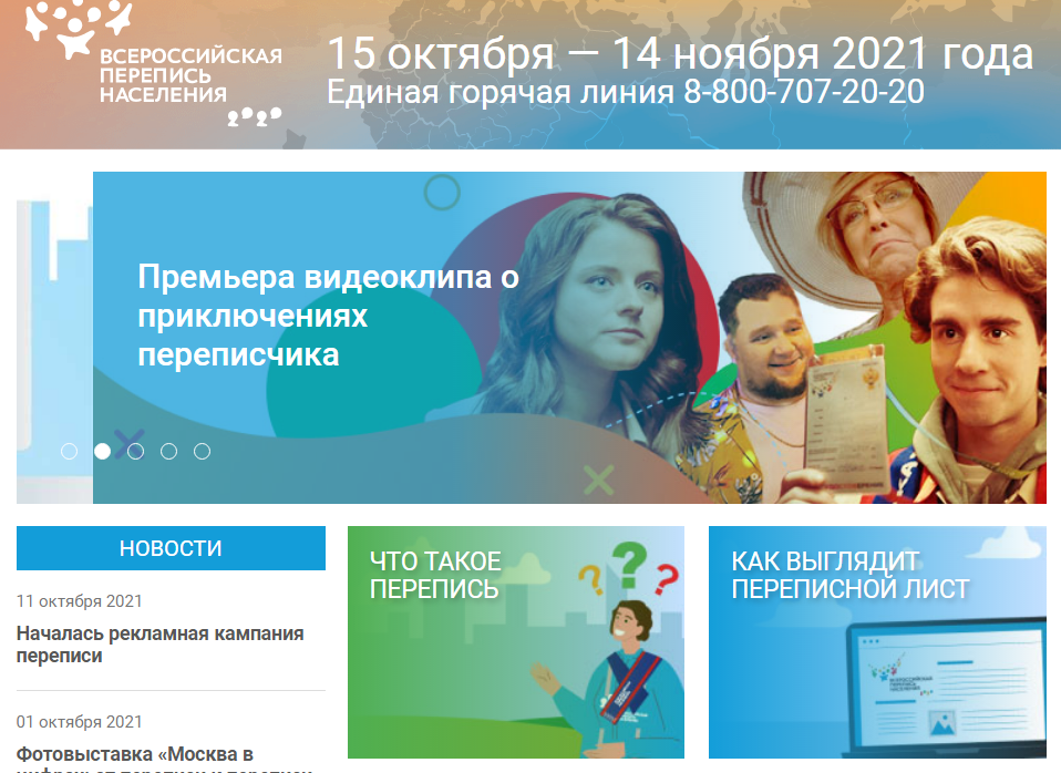 Основной этап переписи пройдет с 15 октября по 14 ноября 2021 года. Впервые в ее проведении примут участие добровольцы: на стационарных участках более 350 волонтеров будут консультировать граждан по общим вопросам и помогать в оформлении переписных листов на портале госуслуг.