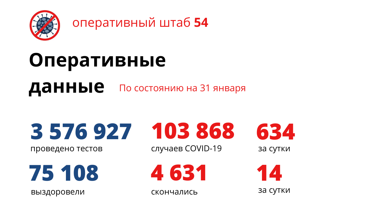 Новый антирекорд заболеваемости зафиксирован в Новосибирской области. По данным оперативного штаба на утро 31 января, за сутки выявили 634 случая COVID-19. При этом выписан с выздоровлением 331 новосибирец.