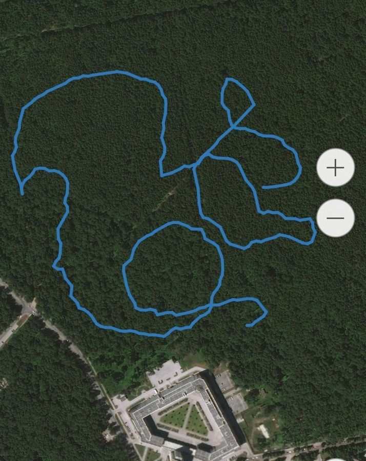 Павел Бутусов, программист, ставший победителем конкурса, представил рисунок в виде символа Академгородка – белочки. Трек в виде белки был создан в университетском лесу. На запись маршрута у Павла ушло около часа, по снегу он шел с небольшой скоростью – 3-4 км/ч.