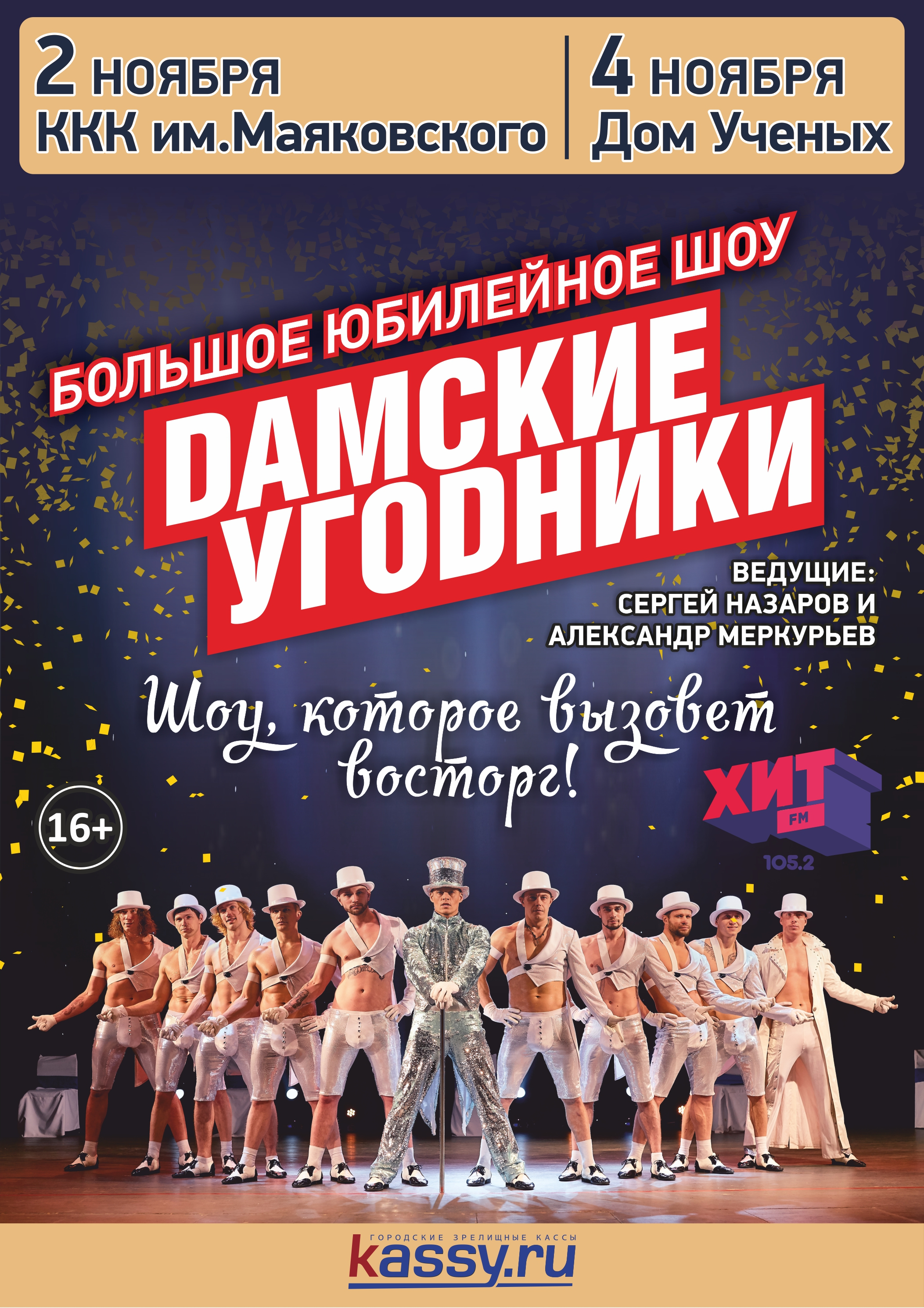 Шоу «Дамские угодники» состоится 2 ноября в ККК им. Маяковского, 4 ноября – в Доме ученых. Начало в 18 часов. Стоимость билетов – от 1000 до 2500 руб.