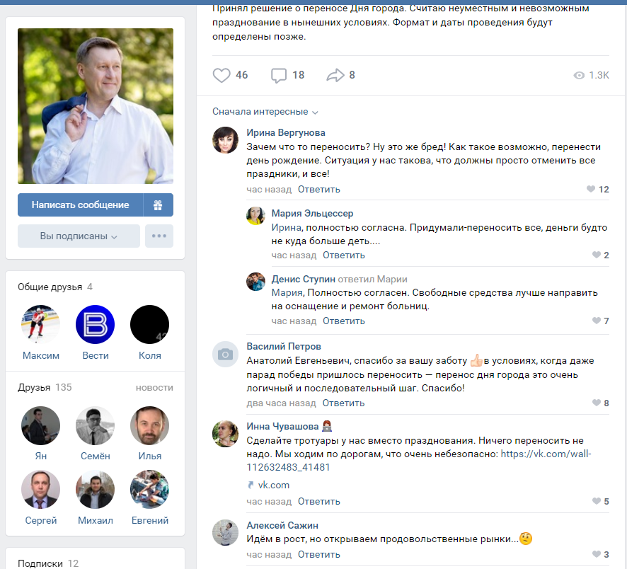 Практически сразу же под этим постом стали появляться комментарии. Одни поддержали градоначальника: решение верное и нужно выждать, пока пандемия коронавируса не закончится. Ведь число заболевших пока растет.
