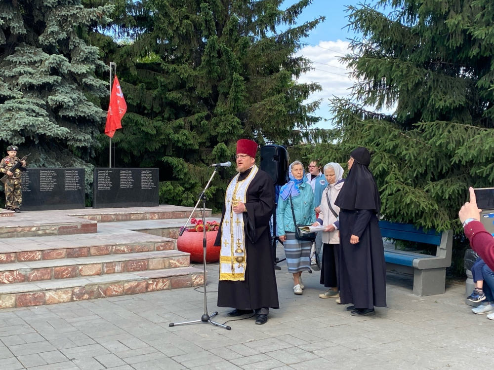 Священник из храма святителя Николая Чудотворца Петр Паутов напомнил всем присутствующим о ценности жизни и рассказал о том, что церковь, объединяя все века, ежегодно поминает всех защитников Отечества, которые погибли во время войны.