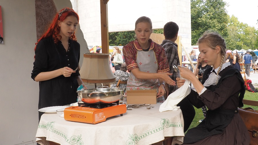 Не обошлось и без вкусной еды. К чаю из самовара предлагались печенье и кексы, дополняли их различные блюда.