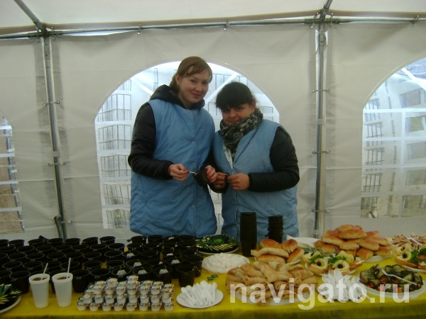 Возле строительной площадки был растянут большой белый шатер, защищавший от ветра и дождя, каждому пришедшему давали наклейку со стилизованной голубкой – символом жилого комплекса. По цвету наклейки можно было определить, соседи по дому стоят рядом или же соседи по кварталу – дело в том, что у каждого дома свой цвет наклеек. Две улыбчивые девушки, Инна и Наташа из кейтеринговой компании, наливали горячий чай и кофе, которые оказался очень кстати, и потчевали дорогих гостей пирогами и блинами. Взрослые участвовали в многочисленных викторинах и конкурсах, детей развлекала аниматор.