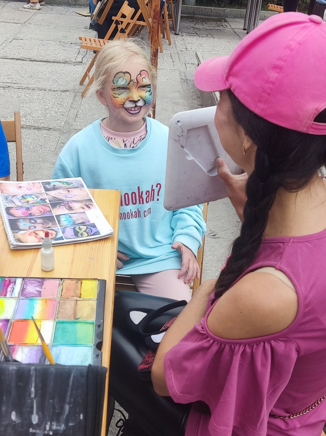 Для самых маленьких был установлен батут. Его тут же облюбовали юные гости праздника. Еще детям понравилось делать яркий аква-грим в виде бабочек и разноцветных зверят.