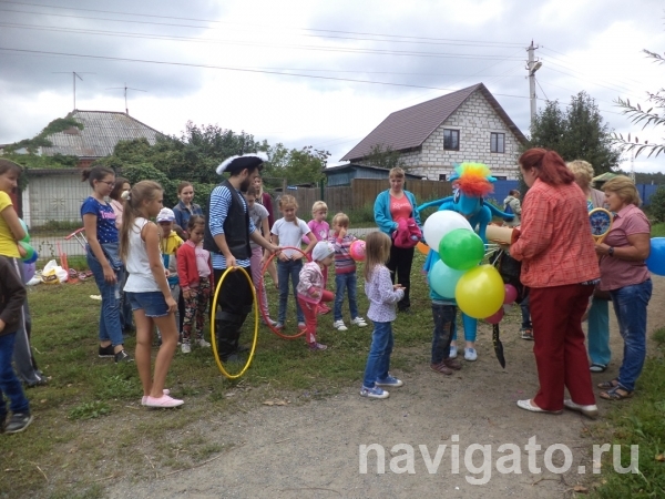 В нём приняли участие пятеро взрослых и около тридцати юных жителей частного сектора Нижней Ельцовки. Часовая игровая программа, проведённая весёлой Пони и дружелюбным Пиратом, включала в себя подвижные игры, шоу гигантских мыльных пузырей, гонки на самокатах, фейерверк из воздушных шаров.