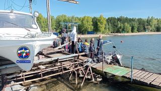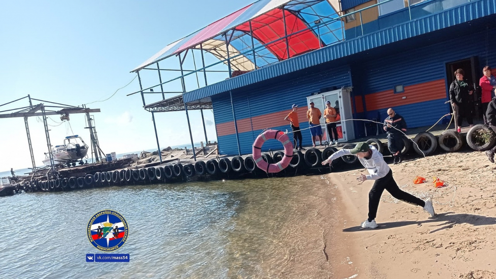 На берегу детям продемонстрировали средства спасения, любой желающий мог попробовать бросить спасательный круг.