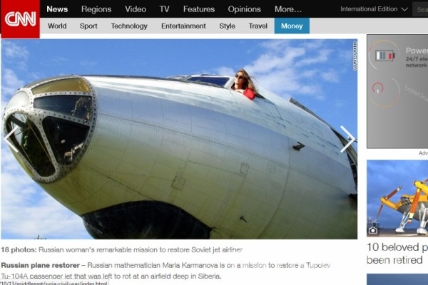 Статья, посвященная девушке-математику из Академгородка, появилась 7 октября на сайте американского телеканала CNN. 31-летняя Мария Карманова решила востановить советский авиалайнер, долгие годы лежавший в руинах на аэродроме под Новосибирском.