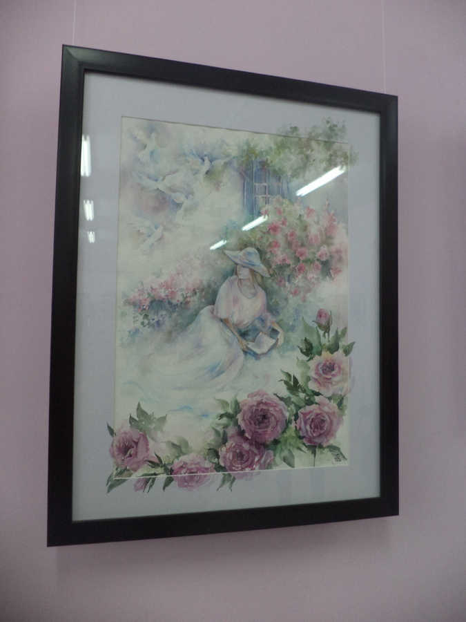 Целое море самых разнообразных цветов вызвало у публики, большей частью которой были дамы, непередаваемый восторг. Ромашки и ирисы, гортензия и одуванчики, хризантемы и розы, – пожалуй, нет такого цветка, который не обрел в творчестве художницы полноценный акварельный портрет. Интересно подобраны и предметы быта, дополняющие цветы в живописных натюрмортах. Чаще всего это хрустальные вазы либо простые стеклянные стаканы и графинчики. Львиная доля композиций реалистична, но есть и декоративные сюжеты. Впрочем, и те, и другие дарят ощущение приближающейся весны, тепла, любви.