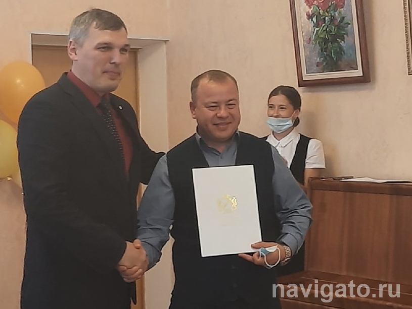 На снимке: замглавы района Е. Терновых поздравляет П. Торокова (справа) с Днем автомобилиста, 2021 г.