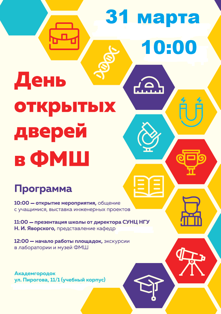 День открытых дверей – это отличная возможность познакомиться со всеми подразделениями СУНЦ НГУ, получить всю необходимую информацию от администрации школы и преподавателей, пообщаться с учениками и сделать правильный выбор!