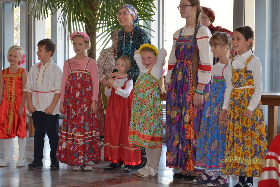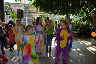 В ресторане Дома ученых всегда всё очень вкусно. Сегодня сюда манит гостей аромат пирожков, что в широком ассортименте пекут местные повара. Оформление столов – в осеннем стиле. Блюда выглядят так нарядно и аппетитно, что слюнки текут! Пока взрослые общаются за чашечкой кофе или чая, неунывающий профессор Веселушкин не дает малышам скучать и учит полезным вещам. У него урок три в одном: игры, танцы и урок безопасности.