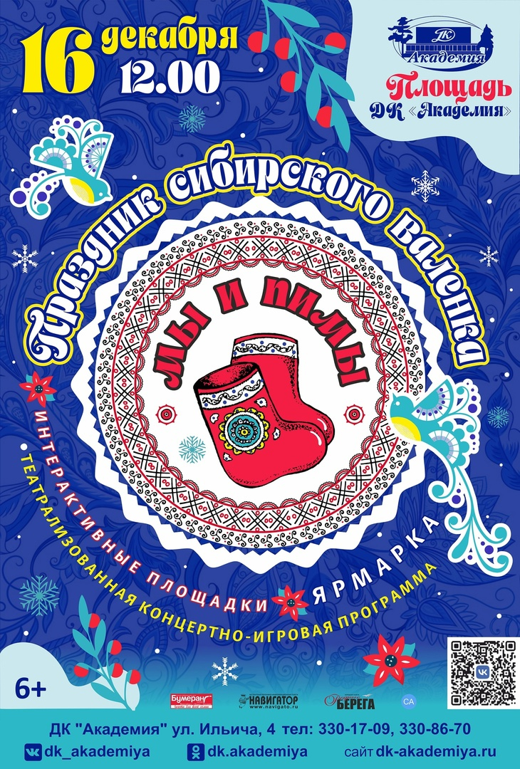 «Где мы – там и пимы!» – один из предлагаемых весёлых конкурсов. Все, кто придут на праздник в валенках, смогут принять в нём участие.