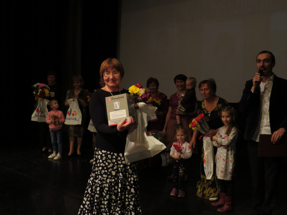 Членам жюри было непросто выбрать победительницу, ведь все участницы яркие и талантливые. Победительницей стала Лариса Фидлер, выпускница НГУ, бывший сотрудник Института прикладной физики СО РАН, ныне пенсионерка, председатель совета дома, мама троих детей, бабушка пятерых внуков. В этот вечер она удивляла зрителей сказками собственного сочинения, лоскутными одеялами на выставке и очаровательной непосредственностью на сцене.