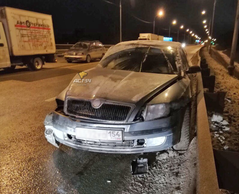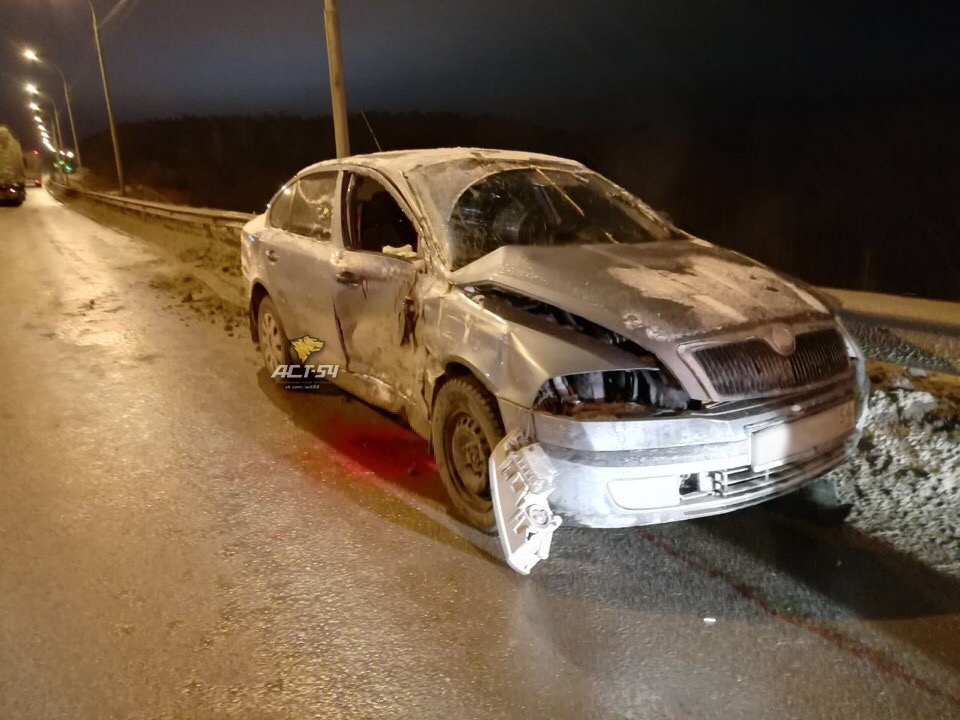 Тягач ехал со стороны Новосибирска в сторону Бердска, водитель Skoda двигался от Нового посёлка в сторону города. В какой-то момент мужчина начал резкий разворот перед фурой, водитель Volvo предпринял резкое торможение, но избежать удара не удалось — грузовик протаранил легковушку в правый бок, после чего она ударилась в отбойник, – сообщают в группе АСТ-54.