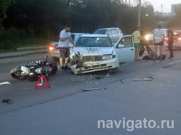 Вечером 6 августа на улице Балтийской, недалеко от дома №33, мотоциклист с девушкой-пассажиром врезались в автомобиль.