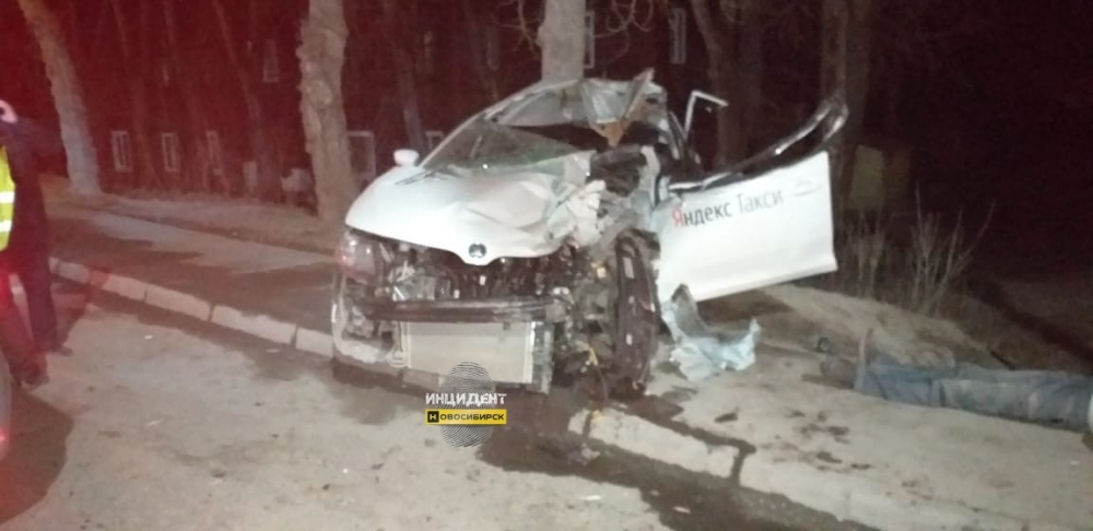 Авария произошла в 01.15 на Бердском шоссе недалеко от остановки «1-й разъезд». Водитель такси не справился с управлением и влетел в автомобиль коммунальных служб.