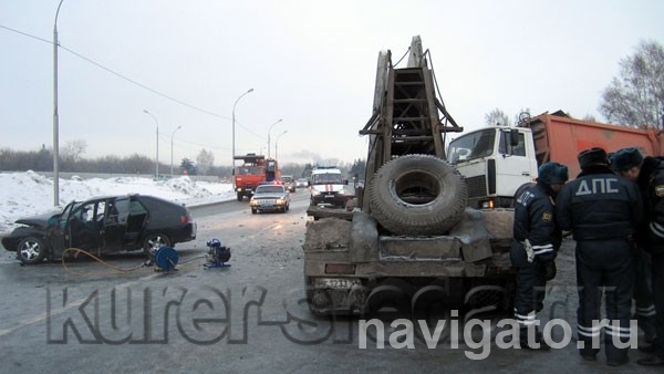 В начале девятого утра 15 февраля на на бердском участке Чуйского тракта (около магазина «Колорлон») столкнулись «КамАЗ», «МАЗ» и «ВАЗ-2112». Женщина, сидевшая в легковушке рядом с водителем, погибла на месте и оказалась зажата в искореженном автомобиле. Она приходилась тещей водителю, которого с сотрясением мозга и переломом костей таза доставили в больницу. На заднем сиденье находились его жена и годовалая дочь. Погибшую из пострадавшей «Лады» извлекали спасатели.