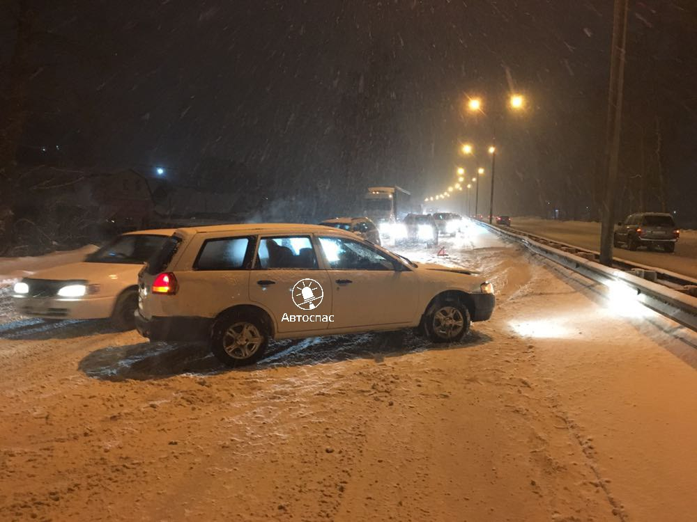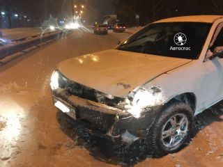 Первая авария произошла на Бердском шоссе в районе дома №520. Водитель автомобиля «Жигули», не справившись с управлением на скользкой дороге, вылетел на соседнюю полосу и врезался в Porsche Cayenne.