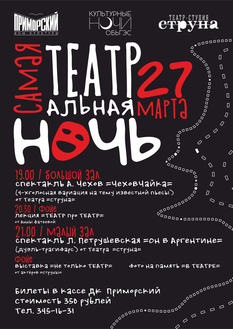 «Культурные ночи на ОбьГЭС» проводятся раз в квартал. В период пандемийных ограничений они проходили онлайн. Сейчас снова можно выходить в люди и посещать мероприятия в учреждениях культуры. Это непременно нужно сделать 27 марта: вечером ценителям театра подготовили шикарный подарок! Организаторы предлагают насладиться театром во всех его проявлениях и назвали мероприятие «Самой ТЕАТРальной ночью».