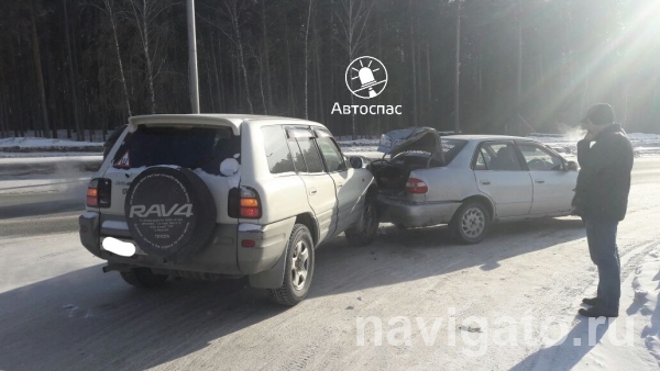 Две Тойоты столкнулись на выезде с парковки "Гиганта" на Бердском шоссе