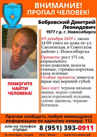 В этот же день, только около двух часов дня, ушел из дома по улице Смоленской Дмитрий Леонидович Бобровский. До настоящего момента его местонахождение не установлено, – рассказывают в отряде «Маяк».