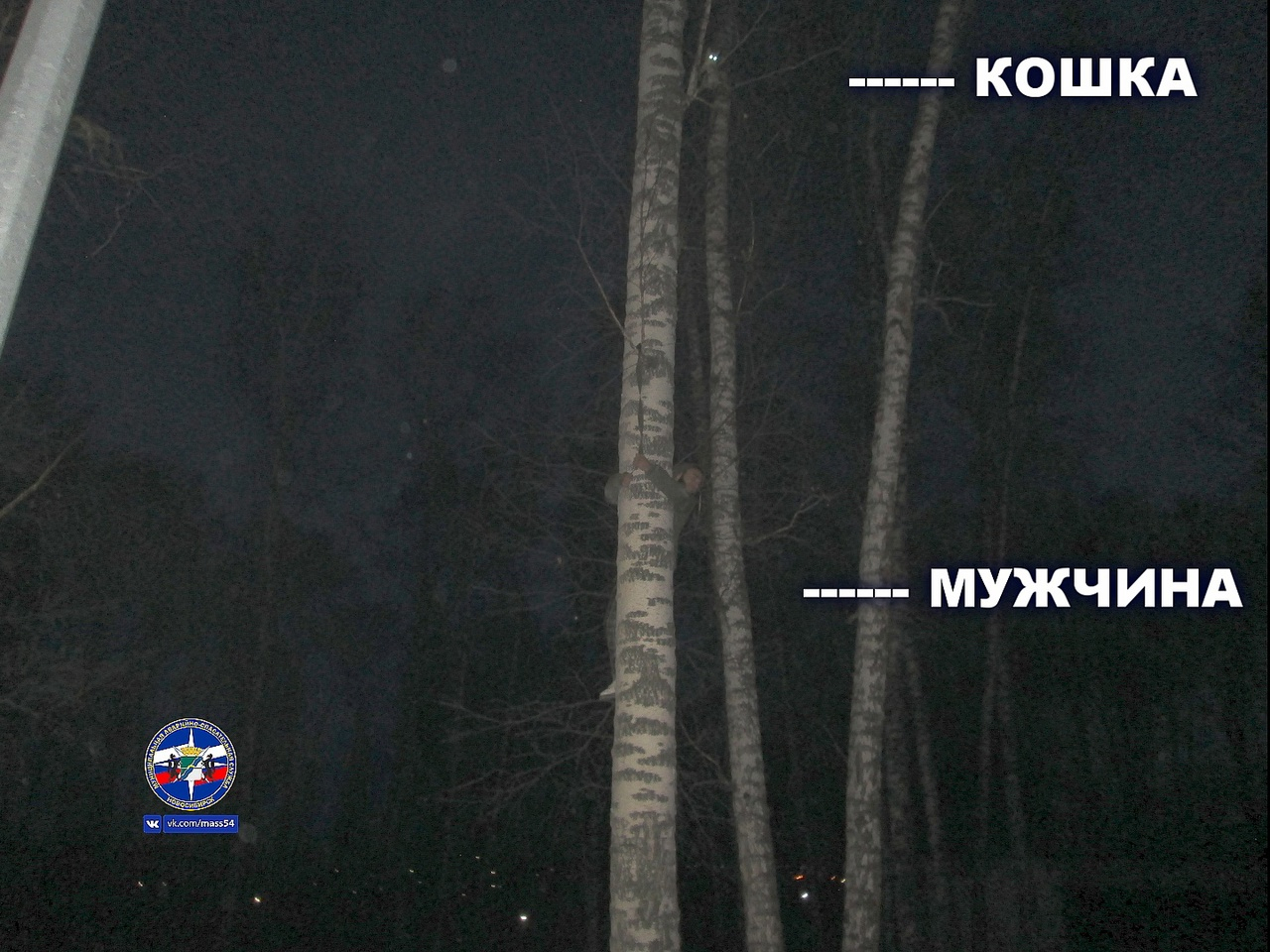 Как оказалось, мужчина не просто так забрался на дерево: несколькими метрами выше сидела кошка. Мужчина рассказал, что хотел помочь животному и в итоге сам оказался в положении, когда ни продвинуться вверх, ни спуститься вниз не мог. Чтобы не допустить повторной спасательной операции добровольцем, сотрудники МАСС сами сняли кошку с дерева.