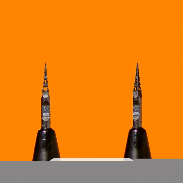 Символ Франции в миниатюре изготовил известный умелец из Академгородка Владимир Анискин. Высота башни – 1,5 мм, толщина грифеля – 0,5 мм.