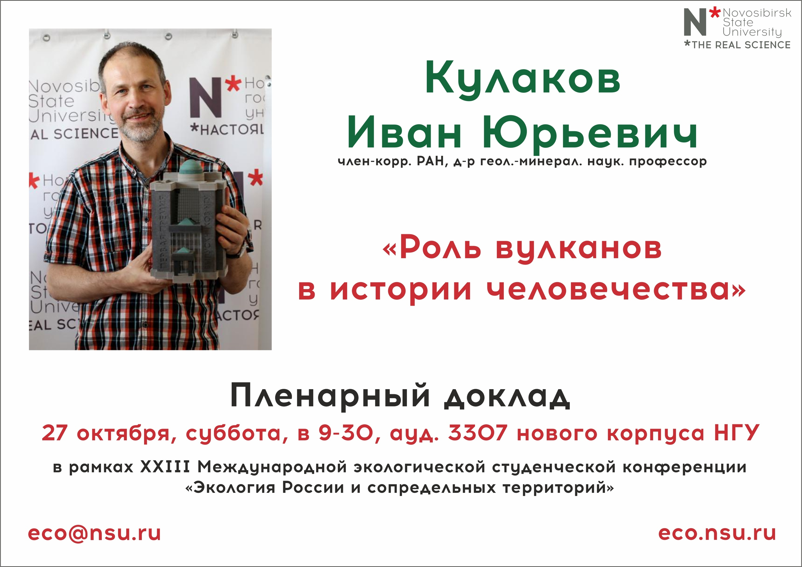 Конференция начнется с уникального выступления члена-корр. РАН Ивана Кулакова — доклада «Роль вулканов в истории человечества».