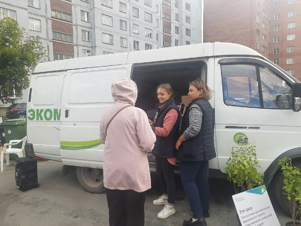 Акция «Экодвор» состоялась 8 сентября во дворах ТСЖ «Варшавская», отремонтированных по федеральному проекту «Формирование комфортной городской среды». Сюда приехал экомобиль, где принимали вторсырье, а рядом с ним были организованы развлечения для детей.