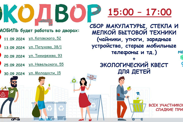В сентября экомобиль в рамках акции, организованной комитетом по охране окружающей среды мэрии Новосибмирска, побывает в пяти дворах, один из них – в микрорайоне ОбьГЭС, по ул. Молодости, 15.